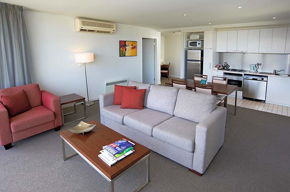 Spacious and modern apartment with a full kitchen, large lounge and dining area, separate laundry, bathroom with shower over bath, 2 LCD TVs, DVD player, stereo system and balcony.